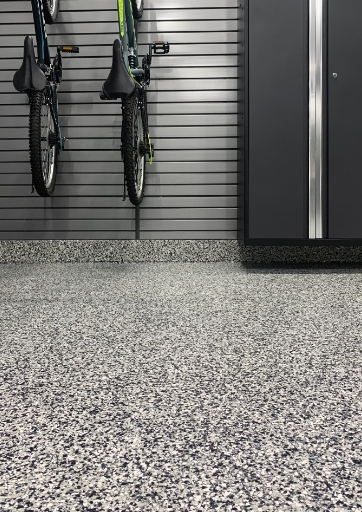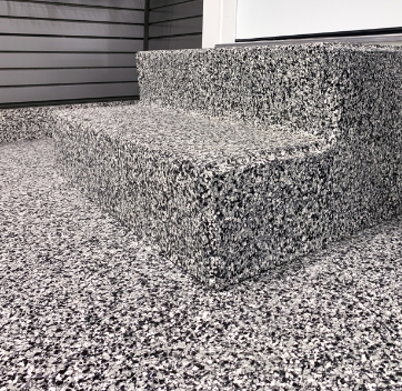 PurEpoxy base layer, full flake coverage, and a UV resistant top-coat for a watertight seal.