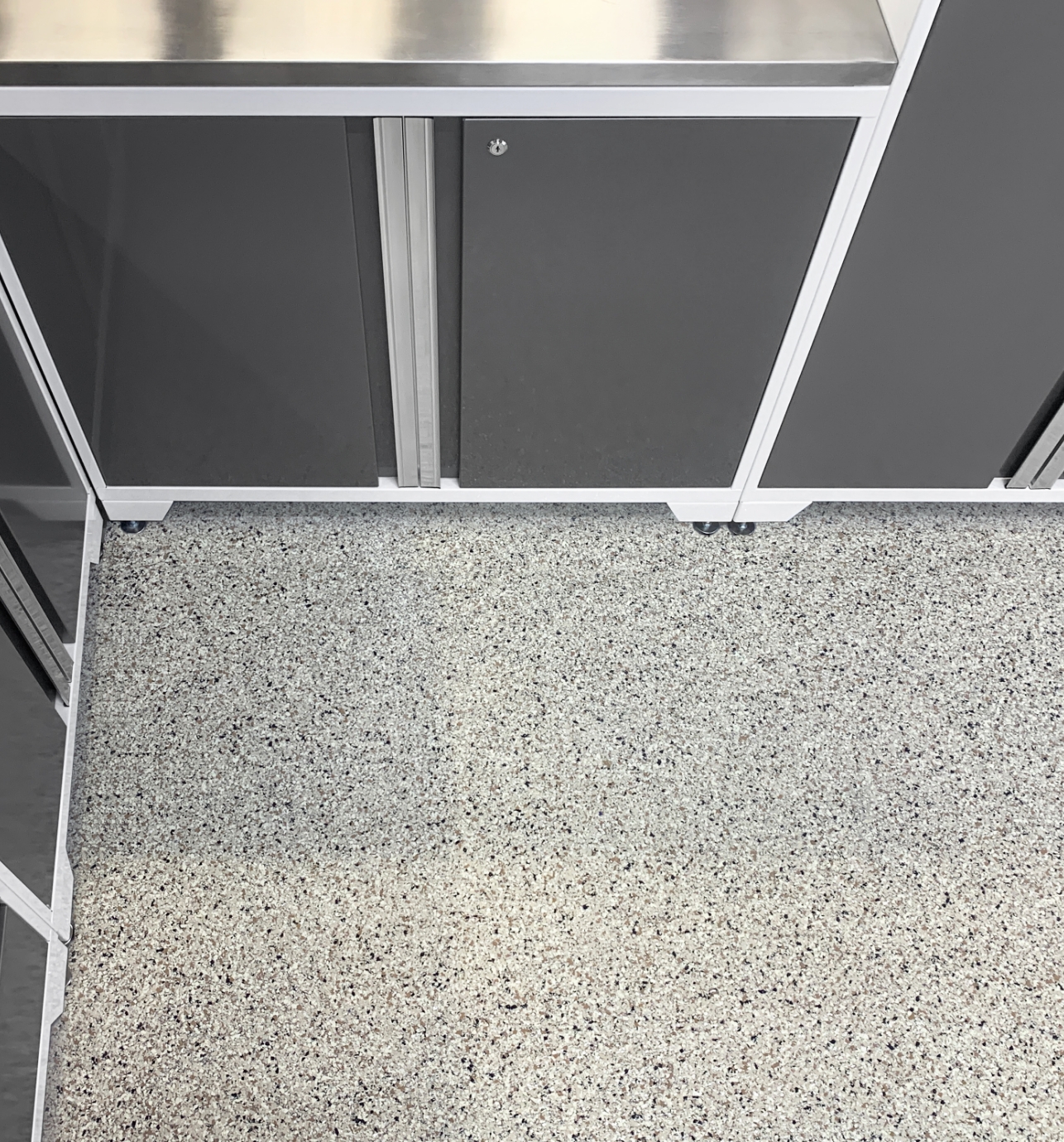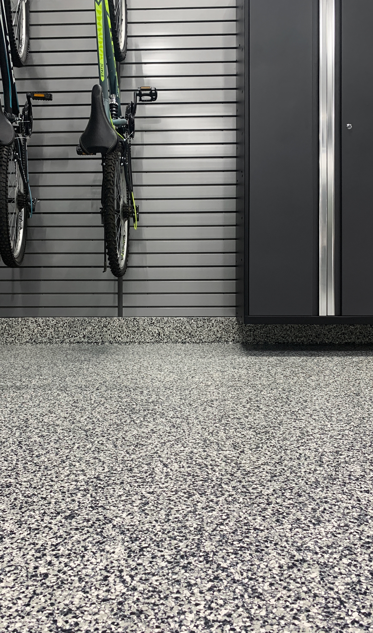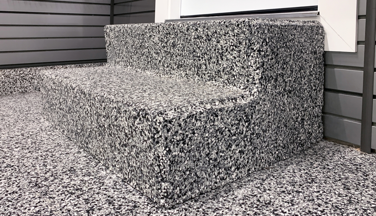 PurEpoxy base layer, full flake coverage, and a UV resistant top-coat for a watertight seal.