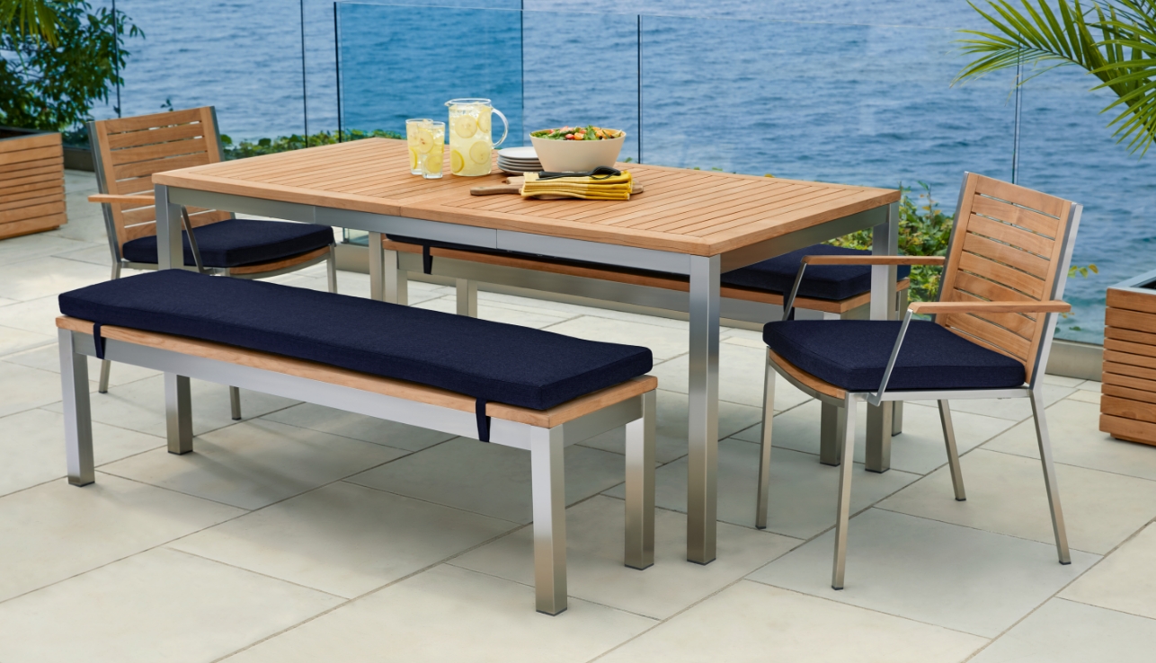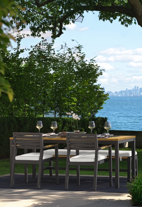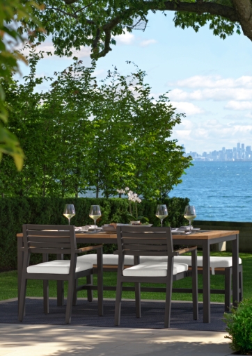 Our dining benches offer a comfortable alternative to traditional dining chairs, letting you create a more casual outdoor dining atmosphere.
